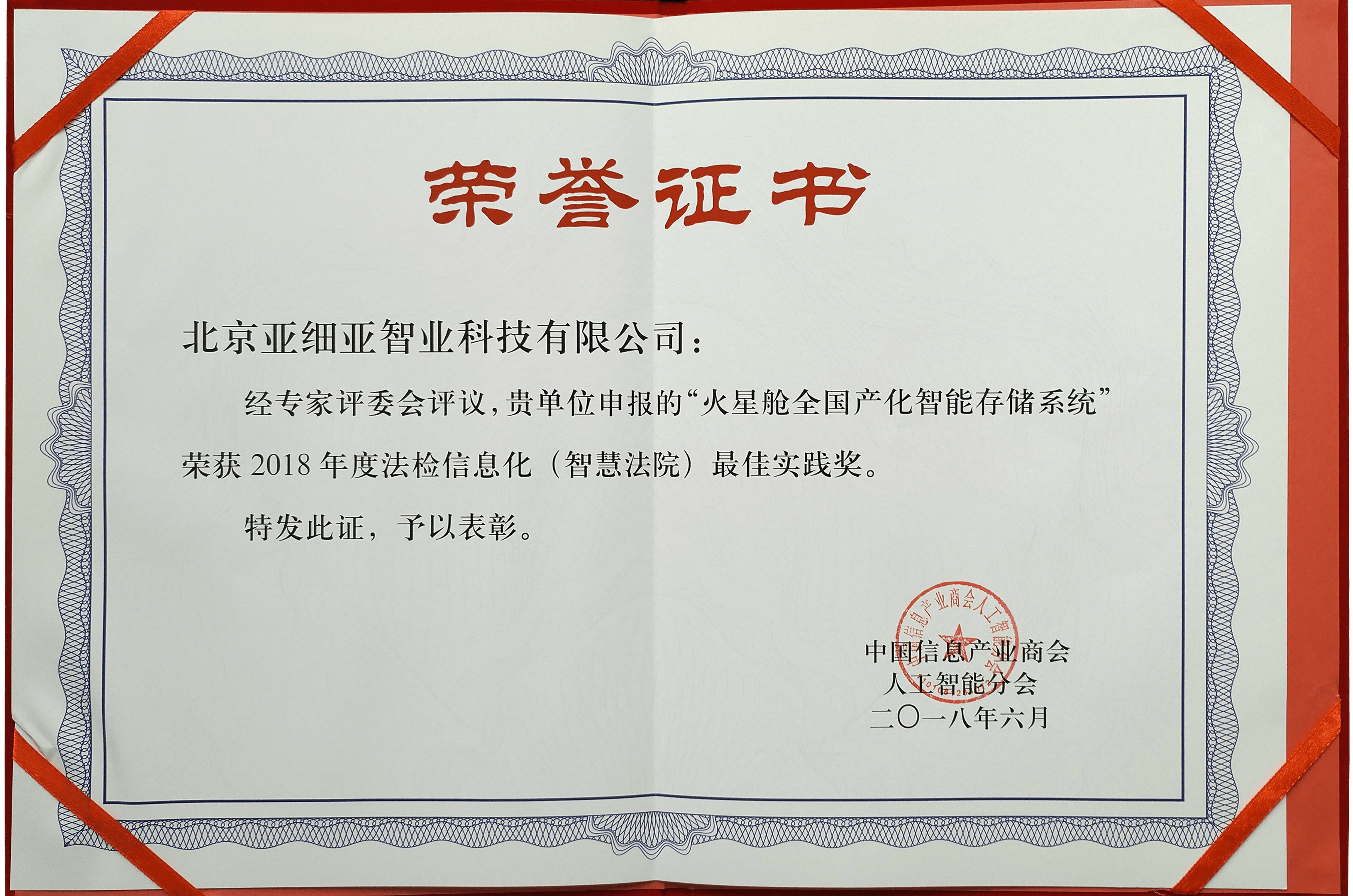 2018年度法檢信息化(智慧法院)最佳實(shí)踐獎(jiǎng)——證書(shū)
